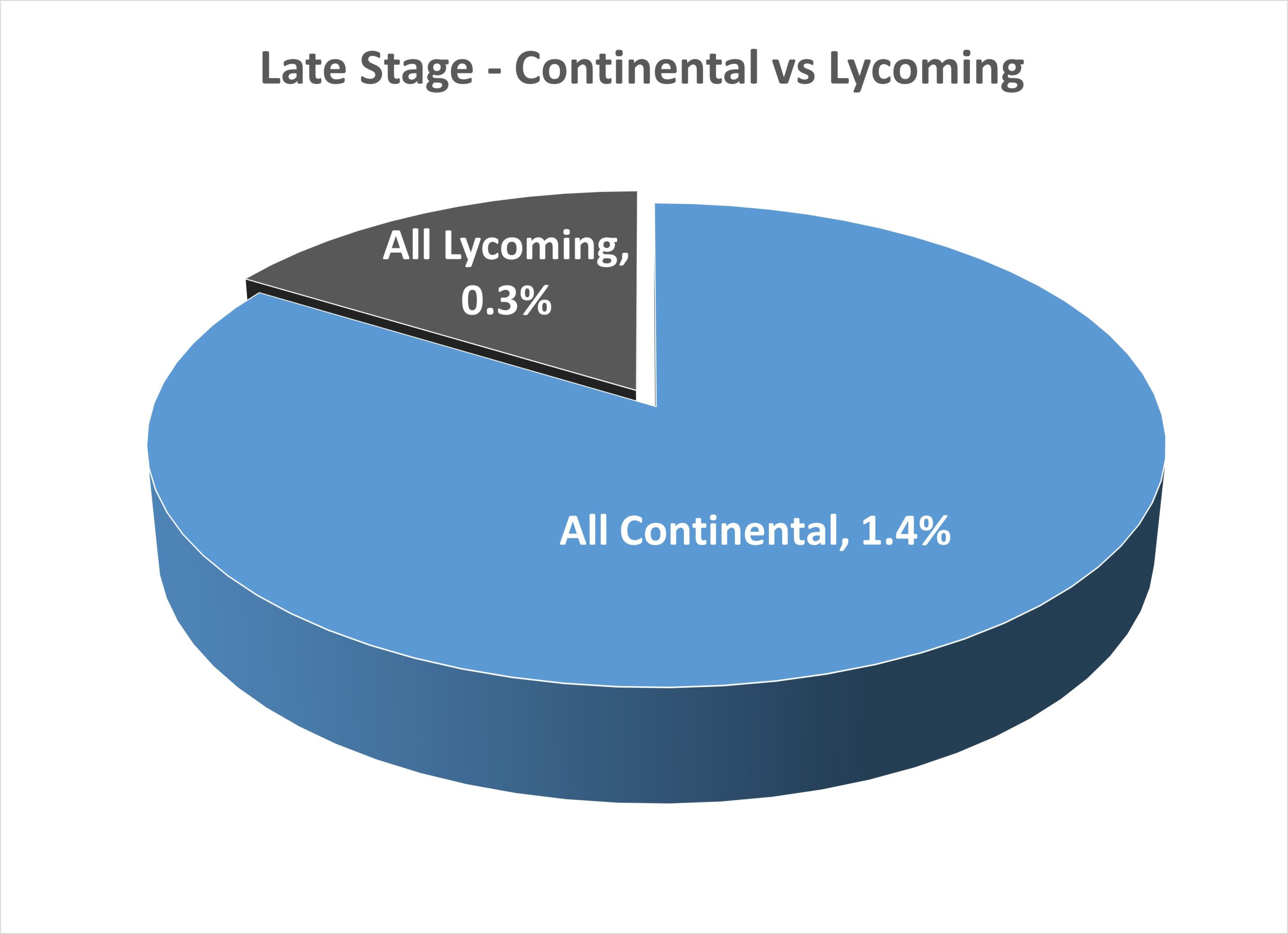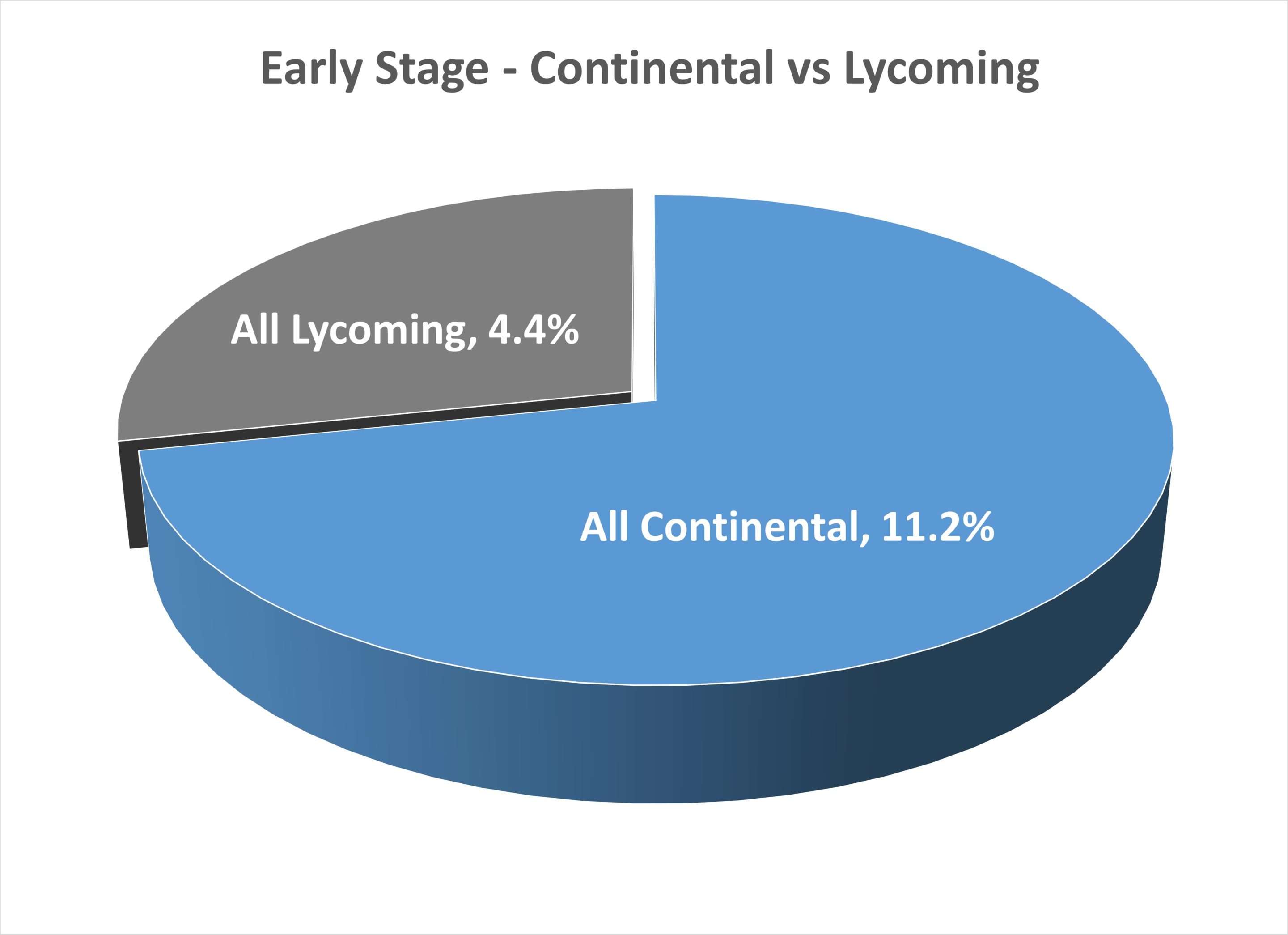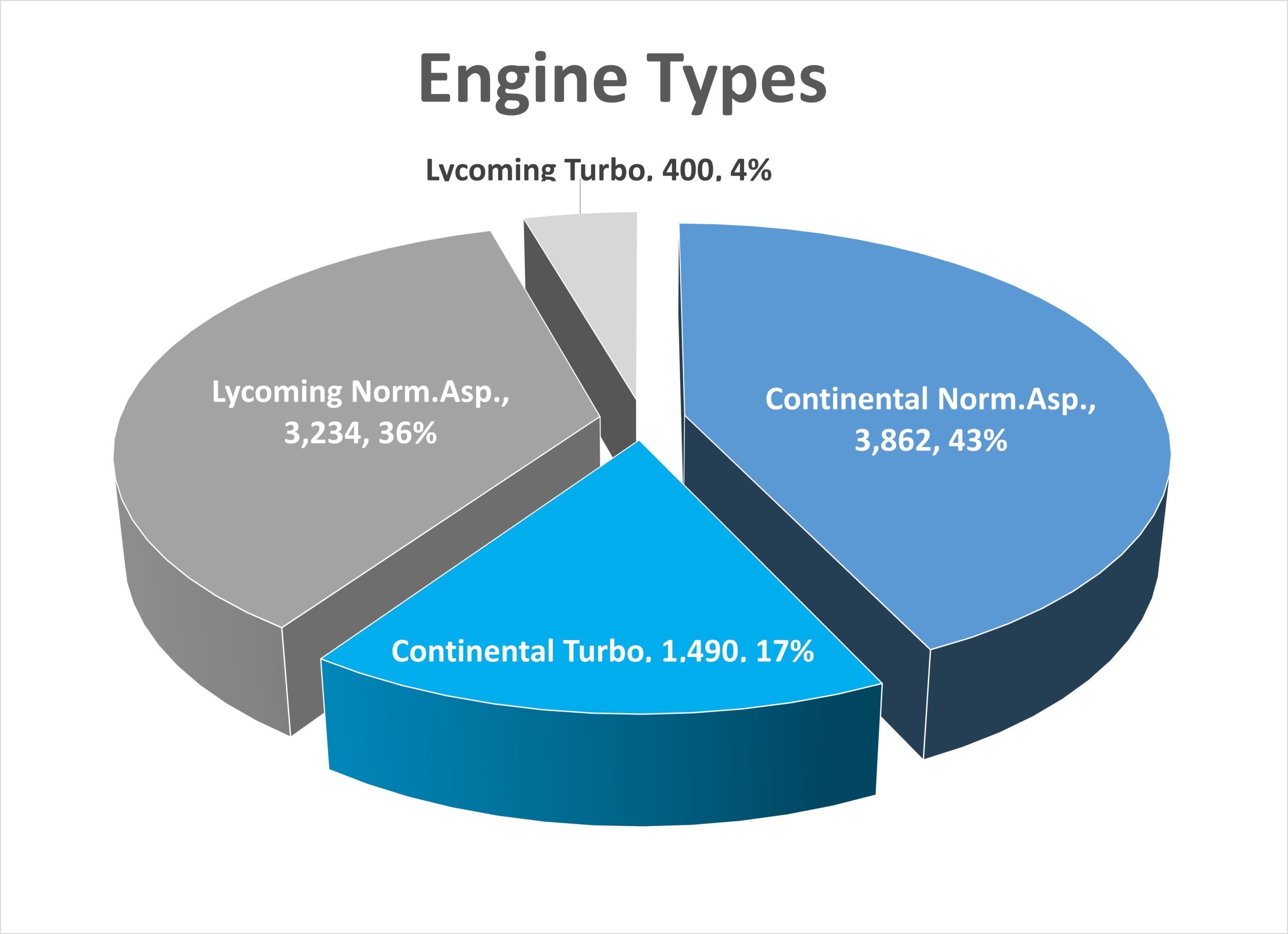 Note that Figure 2 counts exhaust valves, not engines. Since most Continentals have six cylinders and most Lycomings have four cylinders, Lycoming engines were somewhat more numerous than the pie chart suggests.